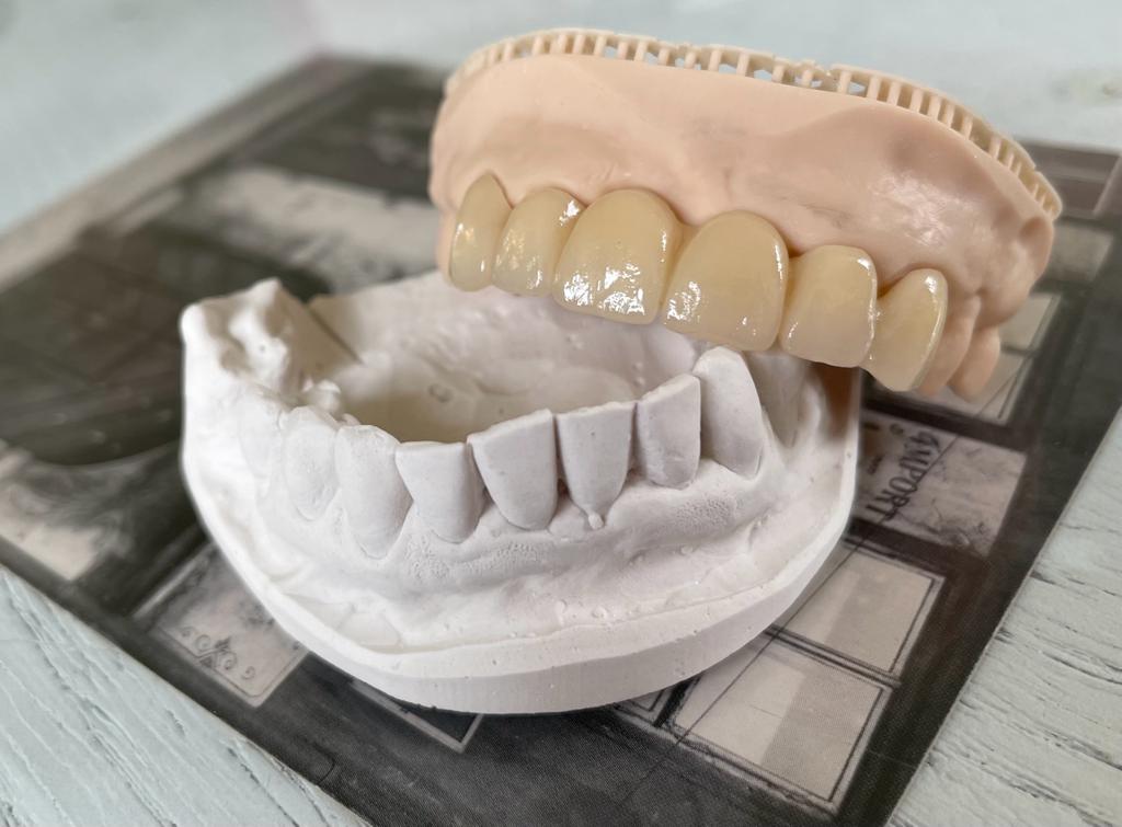 Práce celokeramická-vrstvená na 3D tištěném modelu